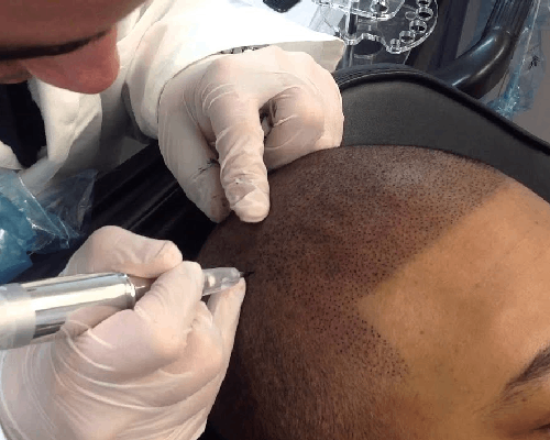 Our treatment involves carefully applying pigment to the scalp to mimic the look of closely-shaved hair follicles, creating the illusion of a full head of hair—even where none exists. This non-surgical, safe procedure is ideal for individuals with conditions such as male pattern baldness, chemotherapy-related hair loss, or other causes of complete baldness.